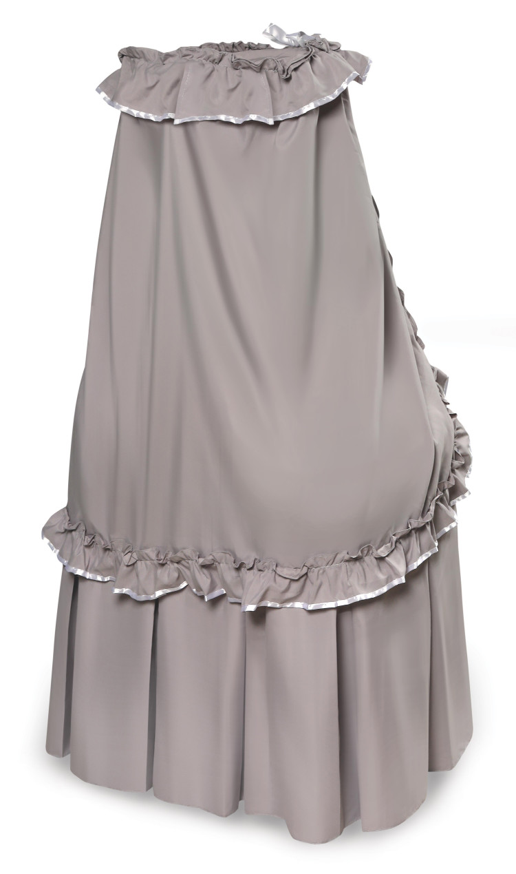Badger Basket’s Majesty Baby Bassinet with Canopy comes complete with everything your baby girl or boy needs for the first few months of sleep. Cozy and comfortable, it includes a beautiful, perfectly accented bedding set. Flip up the wheels to rock the bassinet like a cradle! Metal frame assembles quickly and the bedding attaches easily. Complete bedding set (canopy, fitted sheet, and floor-length liner/skirt) and foam pad included. The skirt conceals the bassinet stand and hides the mesh storage basket. Ruffled, drape canopy flows down from the halo canopy frame at the top of the canopy pole. Canopy easily draws out of the way to tend to your precious bundle inside. Fitted sheet covers the custom fitted, vinyl-covered-foam pad. Mesh storage basket beneath the bassinet is handy for feeding and diaper changing necessities and toys. Fitted sheet is 80% Polyester/20% Cotton. Bedding fabric varies with color/style. Bassinet is made with powder coated steel metal tubing, PP and ABS plastic, nylon, MDF, PEVA (non-PVC) vinyl, and polyurethane foam. Overall unit measures 30.25 inches L x 16 inches W x 53 inches H with the wheels down (51.5 inches with the wheels up). Generously sized interior measures 30 inches L x 15.5 inches W x 9.5 inches deep. Measures 28.5 inches from the rim of the bassinet to the floor with the wheels down, and 26.25 inches with the wheels up. Foam pad measures 30 inches L x 15.5 inches W x 1 inch H. Mesh storage basket measures 19 inches L x 12.5 inches W x 4.5 inches H. There is about 5.5 inches of clearance between top of basket and bottom of bassinet. The bassinet base (below where baby sleeps) measures 19.5 inches L x 16.5 inches W x 18.5 inches H with wheels down, and 16.5 inches H with the wheels up for rocking. Assembled product weight: 12.1 pounds. All measurements approximate. All bedding is machine washable (in cold water and gentle cycle). Tumble dry low, warm iron if needed. Adult assembly required. Illustrated instructions included. Bassinet is for use up to 20 lbs. (9.09 kg), 3-4 months, or until Baby can push up, roll over, or sit unassisted (whichever limit comes first). In order to comply with current safety standards, the mattress does not exceed 1 inch in thickness. Mesh basket designed for lightweight items (up to 5 pounds total). Additional white polyester/cotton sheets sold separately in packages of two (Model #30099). Product includes a limited warranty of 30 Days Parts to the original purchaser. Product details/features subject to change at any time without notice. Props/accessories shown are for illustration purposes only and are not included with the product. Actual color/finish may vary slightly from screen display. This item ships in its original carton that may include a product photo.