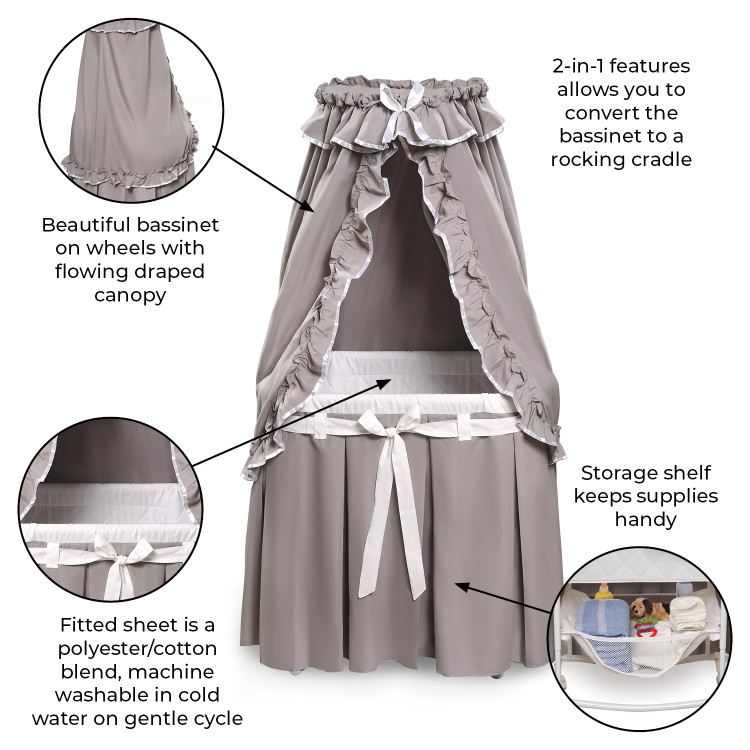 Majesty Baby Bassinet with Canopy – Gray/White Bedding