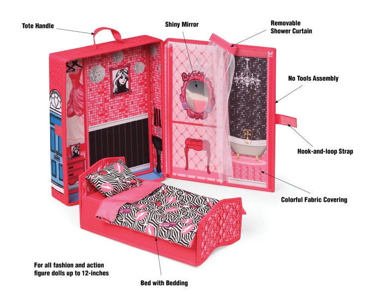 - Take along freestanding doll house playset for effortless fashion and glamour fun at home or on the go