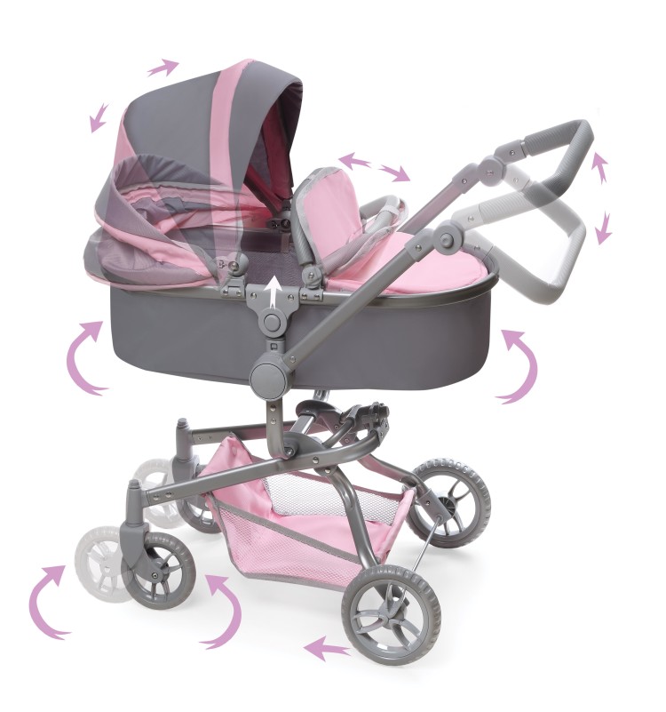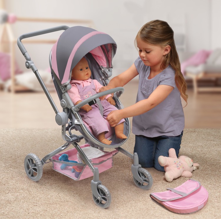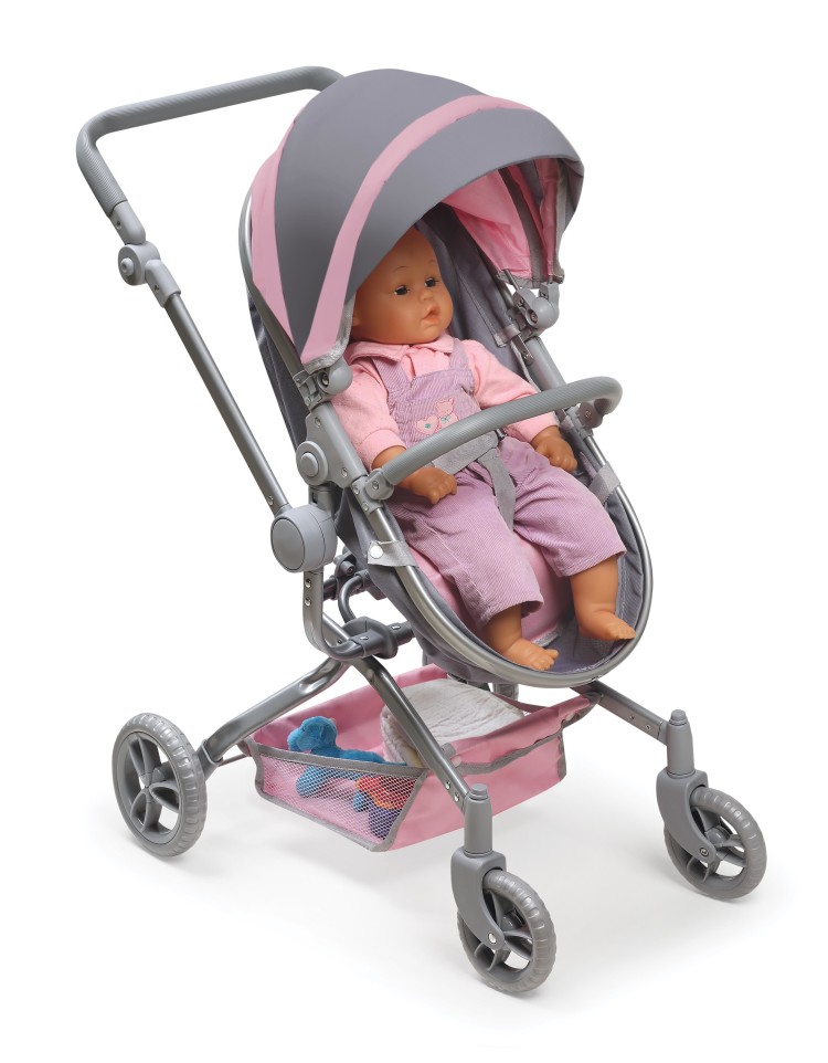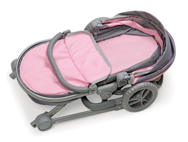 Daydream Multi-Function Single Doll Pram & Stroller – Gray/Pink