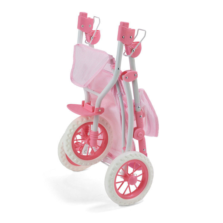 - Stylish three-wheel stroller with height adjustable handle for fashionable baby dolls