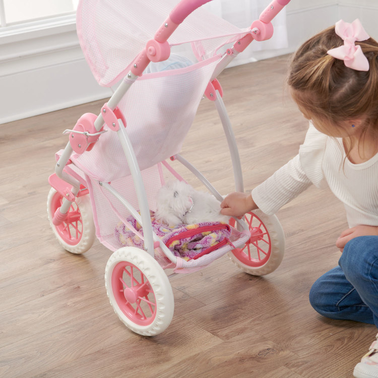 Folding Three Wheel Doll Jogging Stroller – Pink/Gingham