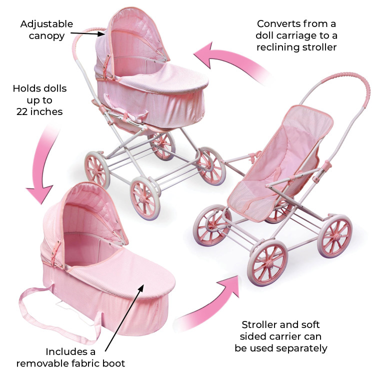 Just Like Mommy 3-in-1 Doll Pram/Carrier/Stroller – Pink/Gingham