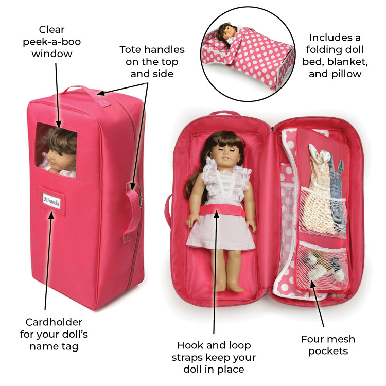 - Pack your favorite doll, zip, and go with this soft-sided carrier