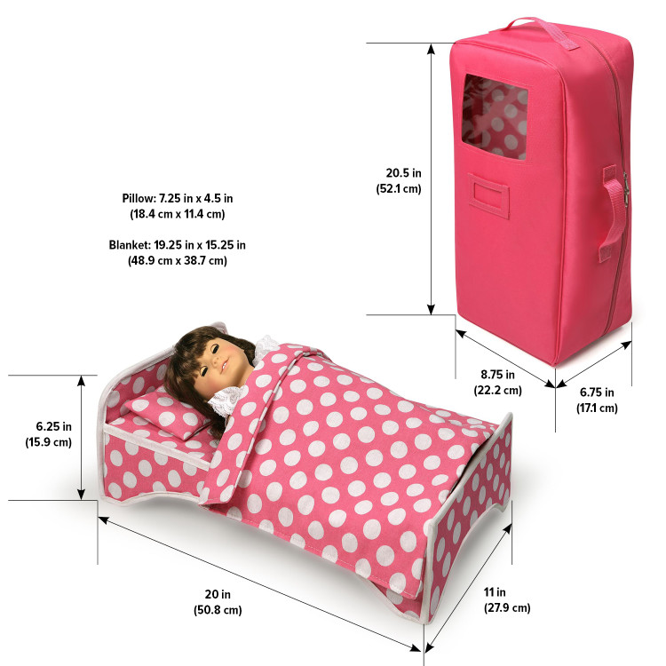 Doll Travel Case with Bed and Bedding – Pink