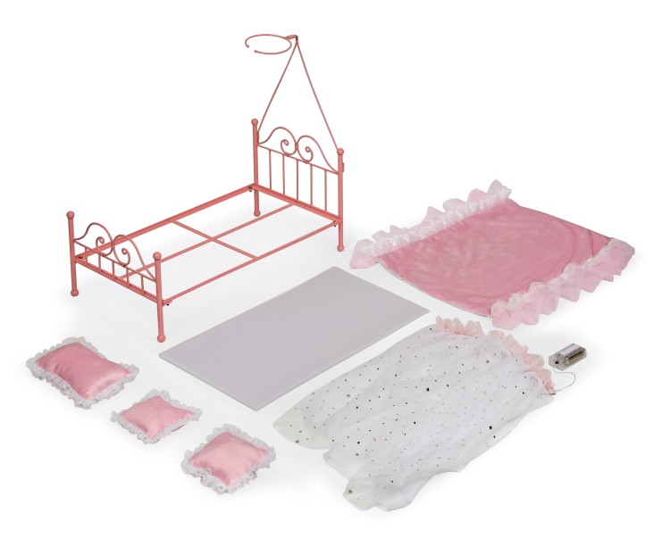 Starlights LED Canopy Metal Doll Bed with Bedding – Pink