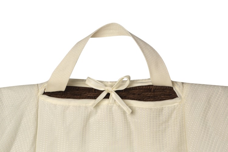 Badger Basket’s elegant Wicker-Look Woven Baby Moses Changing Basket checks all the boxes for a cozy, comfortable, and stylish dressing spot for your newborn baby. Outfitted with a soft fabric liner, a foam pad and fitted pad cover. Modest fabric fully lines the inside of the basket, wraps over the top rim, and hugs the outside. Fitted elastic and two ribbon ties keep the waffle-textured linens in place. Calming, neutral colors are an excellent choice for both boys and girls and complement any nursery or home décor. Wide, sturdy handles, permanently sewn to the basket body, are separate from the fabric liner. When Baby outgrows the Moses Basket, use it as a place for storing toys, stuffed animals, or blankets. Also makes an adorable space for dolls or pets. No assembly needed. All fabric is 100% Polyester with 100% Polyester fill and 100% Polypropylene strap handles. Basket has a rigid, strong, and crush-resistant metal wire frame covered in classically styled, twisted, and woven paper wicker. Pad is polyurethane foam covered in wipe-clean, PEVA (non-PVC) vinyl. Overall unit measures 32 inches L x 19.5 inches W x 10.5 inches H. Interior is 9.5 inches H. Oval basket is tapered with bottom measurements of 28 inches L x 13.25 inches W outside and 27 inches L x 12.5 inches W inside. Foam pad measures 26.5 inches L x 13 inches W x 0.9 inches H. Assembled product weight: 5.1 pounds. All measurements approximate. Basket liner and foam pad cover are removable and can be machine washed in cold water, gentle cycle, and tumble dry on low. Spot clean basket as needed with a lightly dampened cloth or vacuum with a brush attachment (do not soak or immerse). Pad is wipe clean. For use from birth until Baby is approximately 15 pounds (6.8 kg) or until Baby can push up or roll over unassisted, whichever limit comes first. Always place basket on a firm, flat, non-elevated surface. Never place it near the fireplace or open flames. /! FALL RISKS AND HAZARDS – Under no circumstances should you leave a baby unattended or alone in this baby changing basket. Always keep one hand on the baby at all times while using this basket for changing or other awake activities. Babies and children can suffer serious injuries or death after falling from changing baskets and pads. Not to be used to transport your baby in a motor vehicle. Never lift, move, or carry the basket with your baby inside. Complies with all current, applicable ASTM safety standards. Product includes a 30 Day Limited Manufacturer’s Warranty. Props/accessories shown are for illustration purposes only and are not included with the product. Actual color/pattern may vary slightly from screen display. Product details/features subject to change at any time without notice. Additional fitted changing pad covers sold separately in packs of two (Badger Basket Model #80864 White and #80865 Ecru).