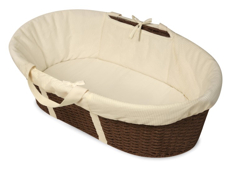 Wicker-Look Woven Baby Moses Changing Basket – Espresso/Ecru