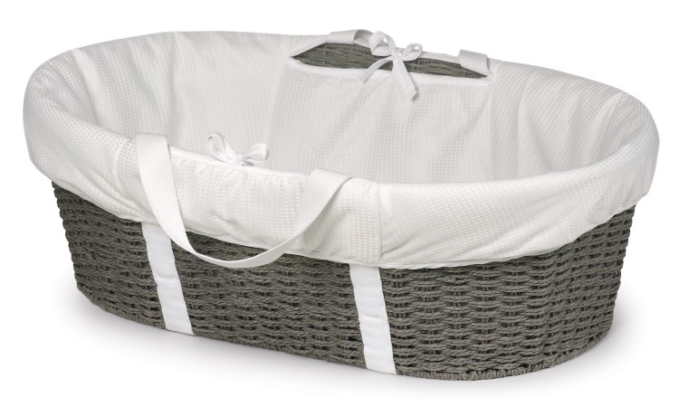 Wicker-Look Woven Baby Moses Changing Basket – Gray/White